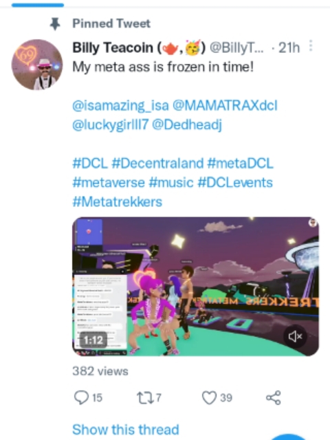 My meta ass is frozen in time!@isamazing_isa @MAMATRAXdcl @luckygirlll7 @Dedheadj #DCL #Decentraland #metaDCL #metaverse #music #DCLevents #Metatrekkers pic.twitter.com/O0yCTZXsuk